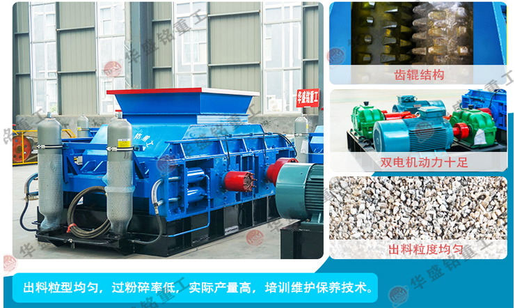 4.華盛銘高鉻錳鋼耐磨材質含有稀有金屬輥皮已申請國家專利,出料粒度可以精確調整已申請國家專利,大型對輥破碎機輥筒已經申請國家專利。